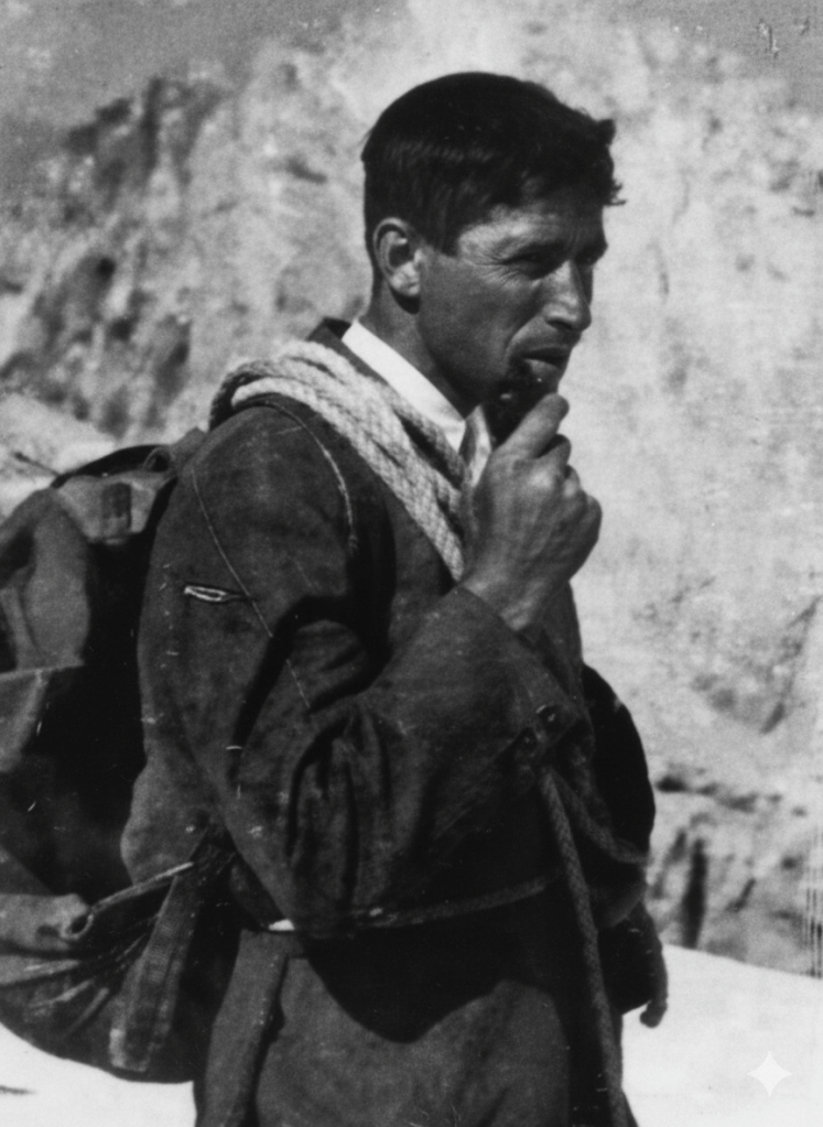 Gian Piero Motti lo definisce ‘eroe sconosciuto’: guida alpina di Canazei, questo alpinista esercitava in Val di Fassa, con qualche deviazione verso Cortina e le Dolomiti della Val Gardena.
