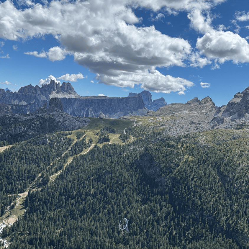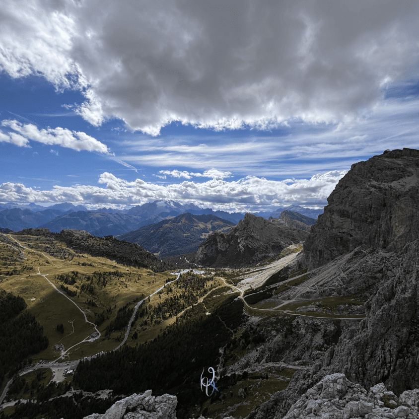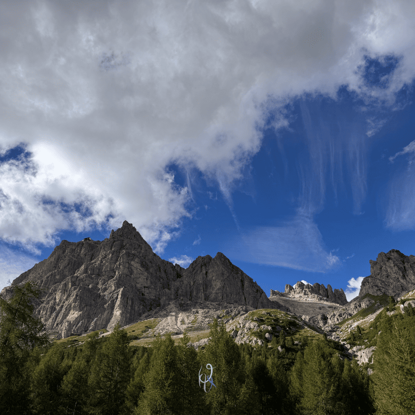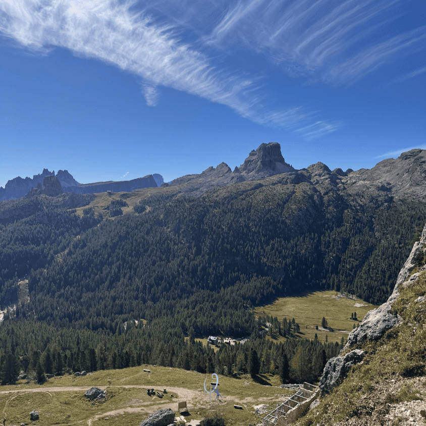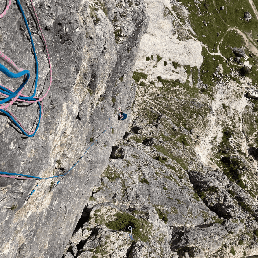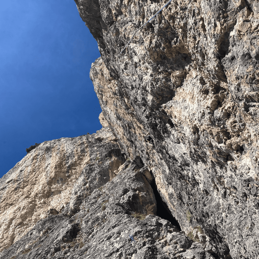 Partiamo in direzione del Passo Falzarego, precisamente verso il Piccolo Lagazuoi, per salire Fante di cuori. Ma poi una chiamata della guida alpina Federico Gardoni, grande amico del mio compagno di cordata, ci illumina con un’altra opzione: The wall alla Torre grande, aperta da Mario Dibona e compagnia nel 2008. Questa via sportiva mi ha sempre inquietato per i suoi gradi non alla mia portata, ma certa di potercela fare da seconda nei tiri più difficili, accettiamo entrambi il consiglio di Federico e proseguiamo la strada qualche minuto fino al ristorante Strobel.