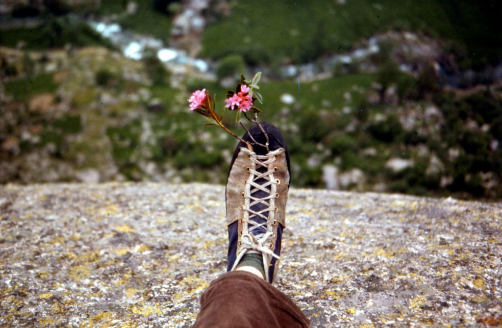Dunque, c’era Guerini che aveva questa suola fantastica e noi, maledizione, avevamo sempre delle scarpe tremende, pessime per quelle pareti. Finché riusciamo a carpire il segreto, perché gli portiamo via un paio di scarpette, e riusciamo a capire qual era questa maledetta suola che usava. Poi si è diffusa la voce. È vero che durava una settimana, ma eravamo anche molto abili a risuolare!