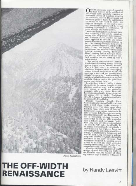 Fonte: l’articolo su climbing.com con i testi di John Long.