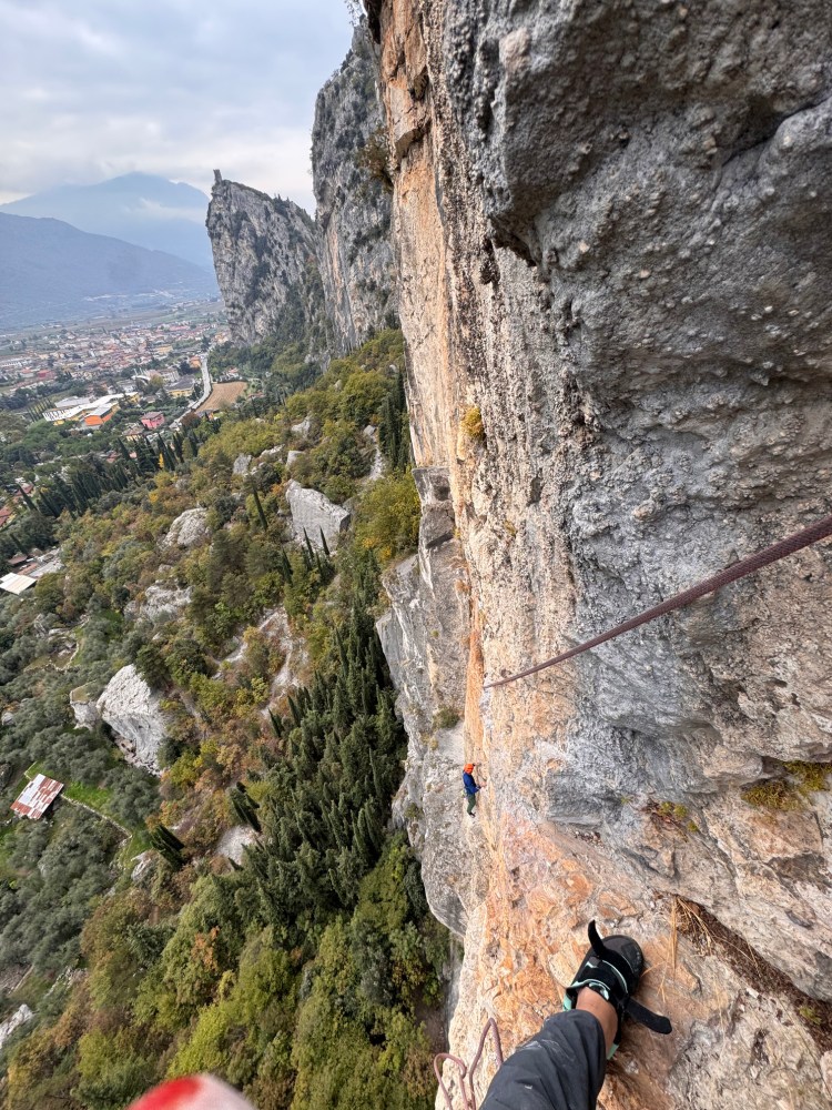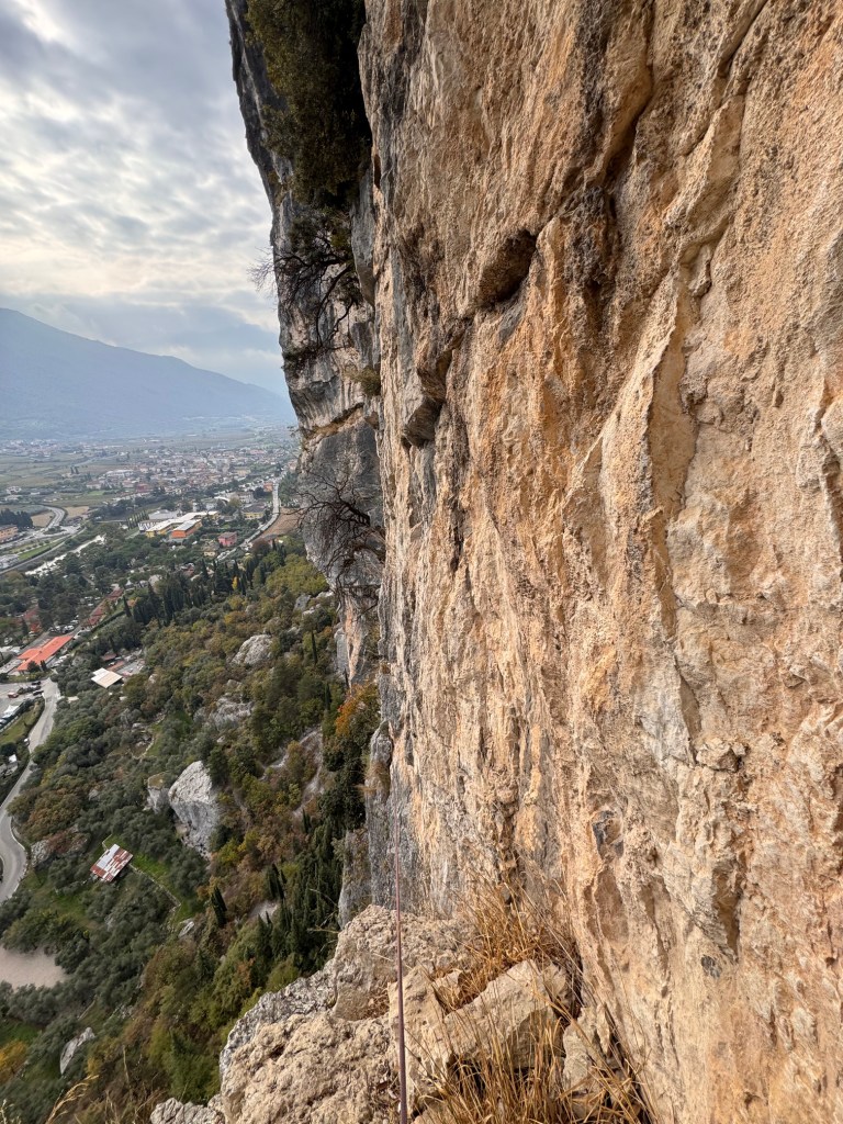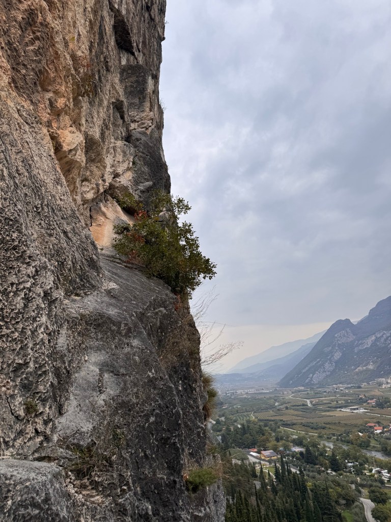 Il tempo incerto ci porta davanti al Colodri ad Arco per salire la via Katia Monte, un itinerario classico della Valle, aperto da Giuliano Stenghel e Franco Monte nel 1976. Presente tra i miei progetti, approfittiamo della salita per goderci una scalata tranquilla e rilassata. Si fa per dire. Se la giornata è no, a volte nemmeno una bella arrampicata te la fa passare del tutto. Ma aiuta. Dobbiamo concentrarci sul lato positivo della vita qualche volta, non trovi? Lo dico sempre, me lo propongo sempre, non sempre lo faccio… ma quando non mi ricordo che esiste anche quella parte che definiamo bicchiere mezzo pieno, per caso o per fortuna, è la vita stessa che mi ammonisce, mostrandosi nel suo aspetto migliore. Per sbaglio o per caso.