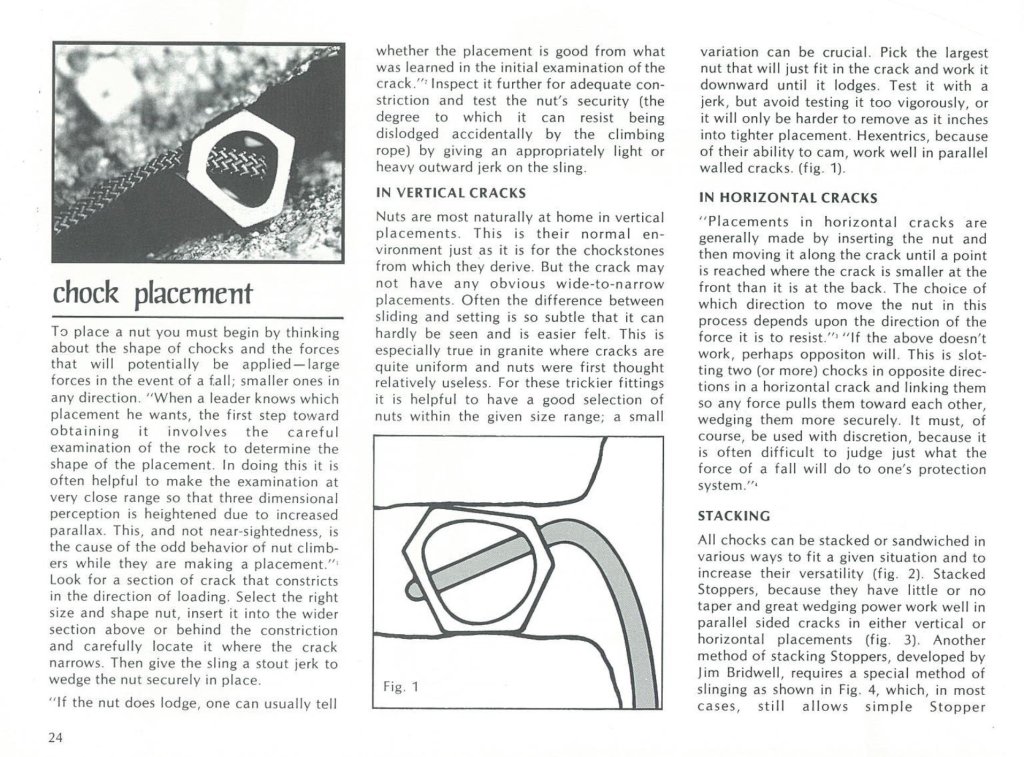 “L’incredibile progresso nel livello dell’arrampicata verificatosi negli anni Settanta grazie agli sforzi di climber del calibro di Tom Proctor, Pete Livesey e Ron Fawcett, si rivelò essere, alla luce dei fatti, solo l’inizio. Tuttavia, il miglioramento nella pura difficoltà tecnica non sarebbe potuto proseguire sulle pericolose vie tradizionali, e per alcuni arrampicatori del momento la difficoltà tecnica delle vie che venivano aperte era molto più interessante che assumersi grandi rischi e fronteggiare la pressione psicologica che comportavano.”