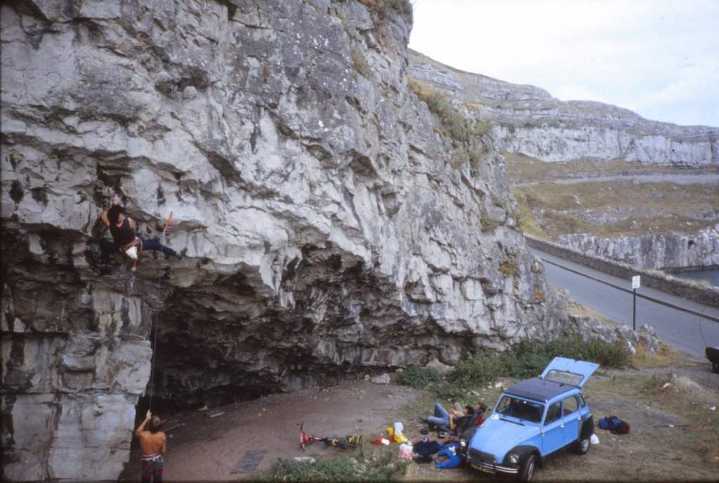 “Fino agli anni Ottanta circa, mettere spit su roccia britannica era praticamente proibito, con l’unica chiara eccezione rappresentata dall’arrampicata artificiale. Pen Irwyn, come molte altre falesie tra le più importanti dello Yorkshire e del Derbyshire, era stata una popolare destinazione per l’arrampicata in artificiale negli anni Cinquanta e Sessanta, e alcune delle vecchie vie presentavano spit nelle sezioni troppo lisce, per unirle alle altre salite con chiodi tradizionali o dadi.