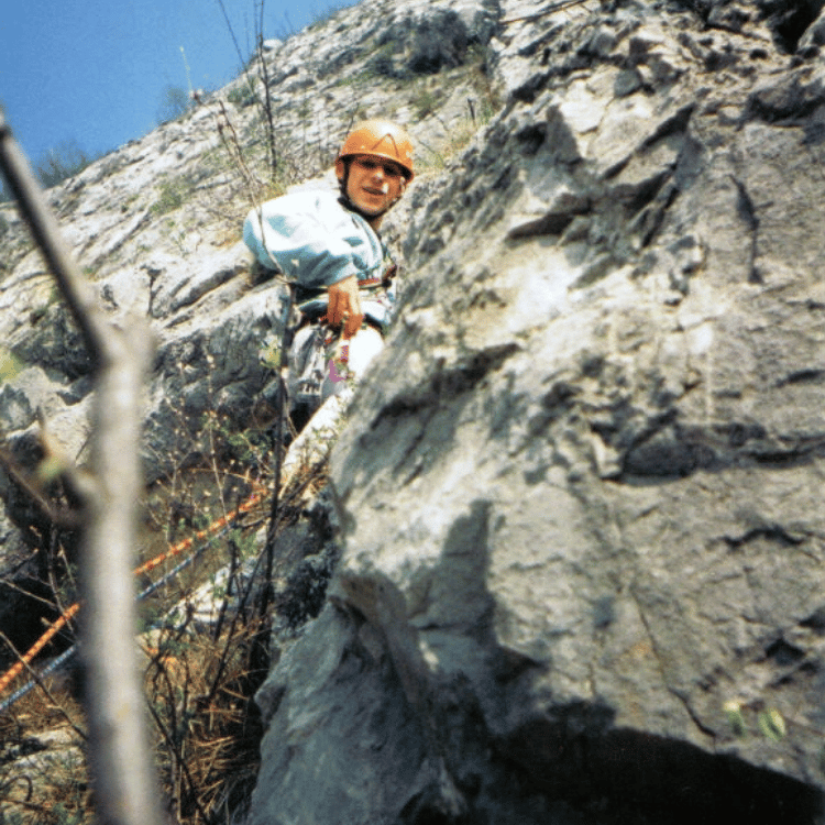 Io ho iniziato ad arrampicare a 18 anni: in Vespa con un mio amico del paese andavamo già a salire vie al Colodri il primo anno che arrampicavamo, e anche in Medale a Lecco. Ma poi ho voluto frequentare un corso, per capire quello che stavamo facendo. Abbiamo iniziato a salire le prime vie di terzo e di quarto grado in Dolomiti, anche se arrampicavamo già su vie di VI in Valle del Sarca, ma sapevamo che né l’ambiente né la chiodatura erano gli stessi.