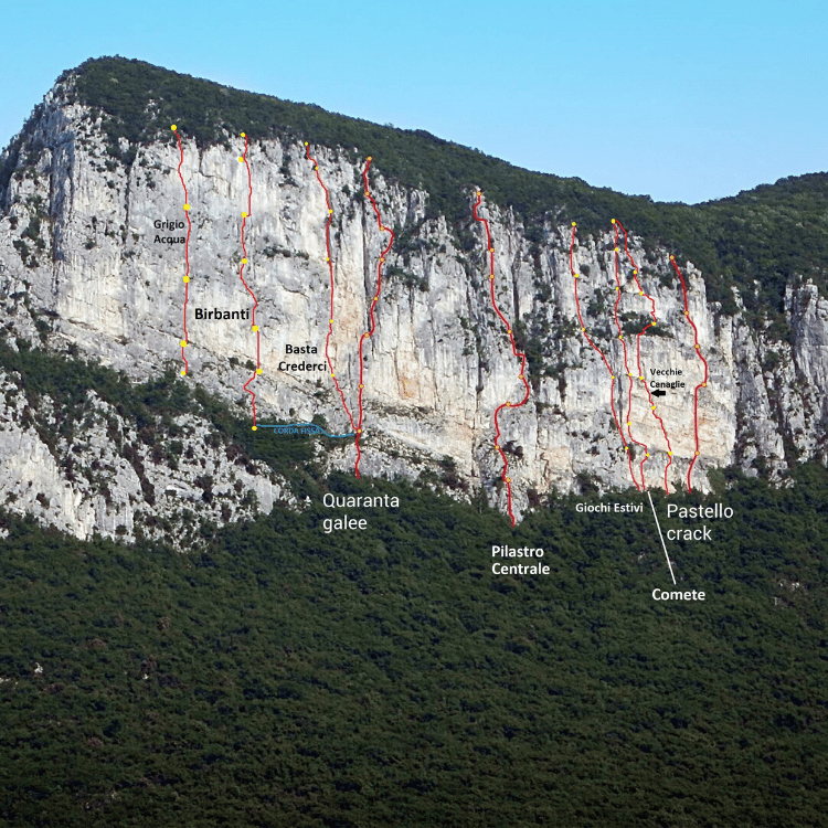 Ivan: Ho visto sul tuo sito che sei andata a ripetere Birbanti al Pastello. Abbiamo appositamente chiodato quella e un’altra via sportive, con protezioni posizionate in modo che l’impegno nel salirla fosse limitato. Le abbiamo aperte dall’alto.