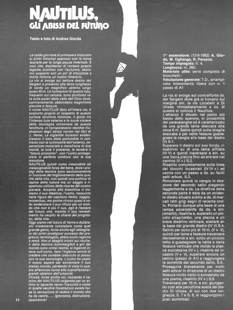 È stato nell’articolo di Andrea Giorda pubblicato su Lo Scarpone del CAI che ho letto per la prima volta il nome di Roberto. Subito dopo ho chiamato Andrea, che mi ha raccontato qualcosa di lui, di questo ragazzo che lui e Mario Ogliengo hanno portato con sé nel 1982 per aprire una tra le più famose e ripetute vie della Valle dell’Orco, Nautilus.