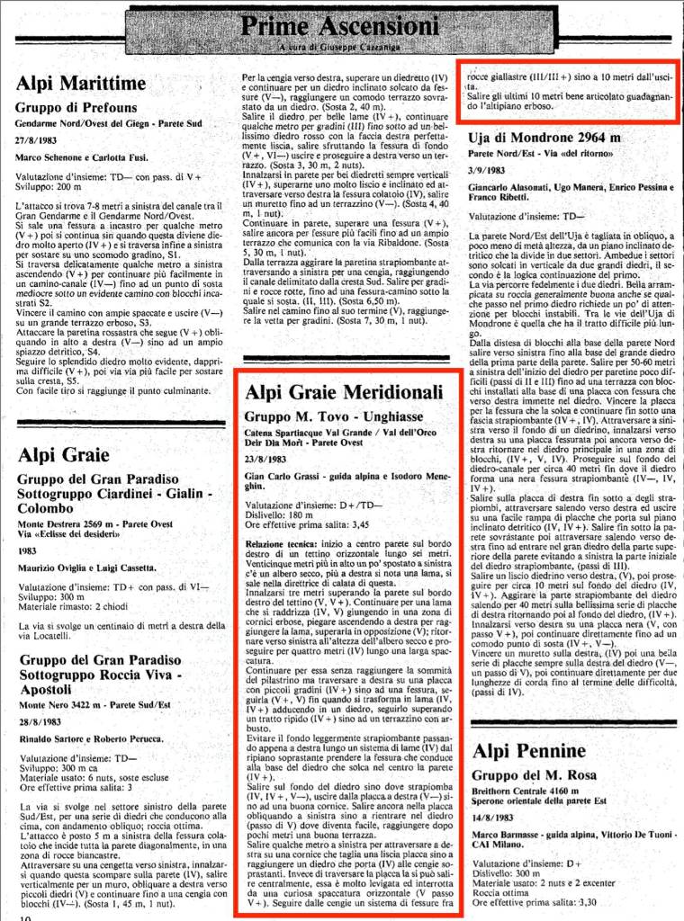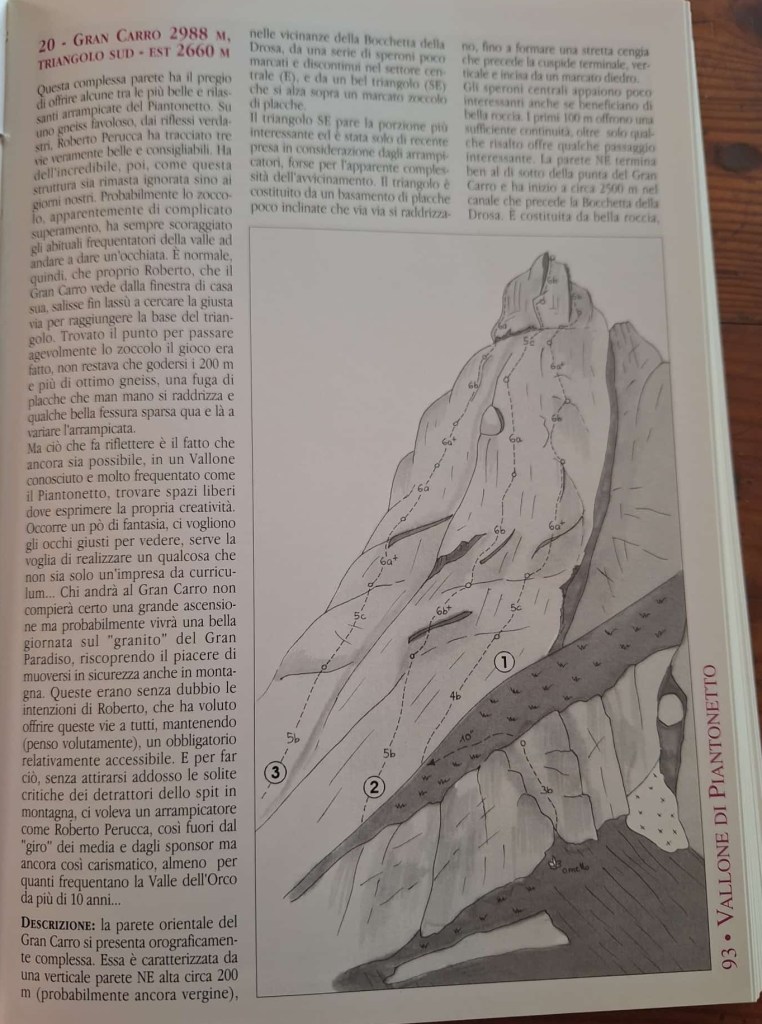 “[…] Roberto Perucca salì questa fessura nei primi anni ottanta, in un’epoca in cui un monotiro (che non arrivava da nessuna parte) non interessava a nessuno. Ma Roberto era a suo modo un visionario e anticipò i tempi”.