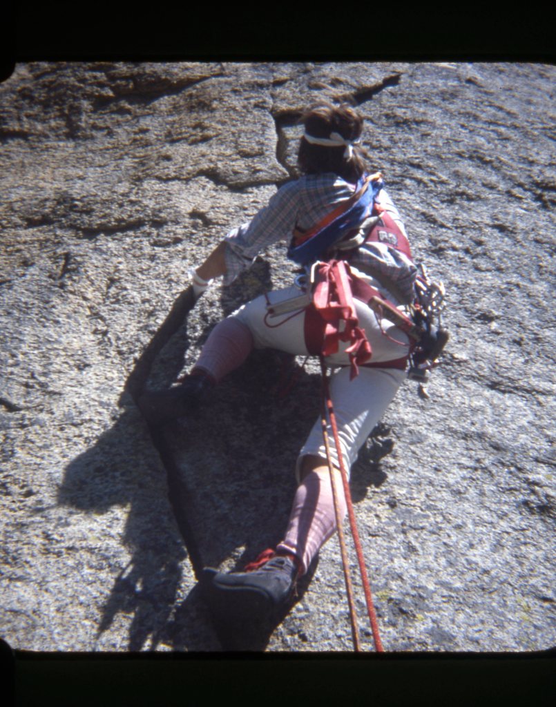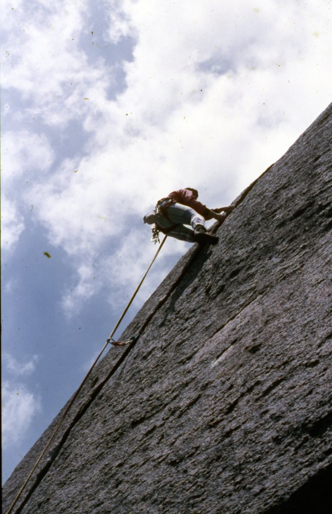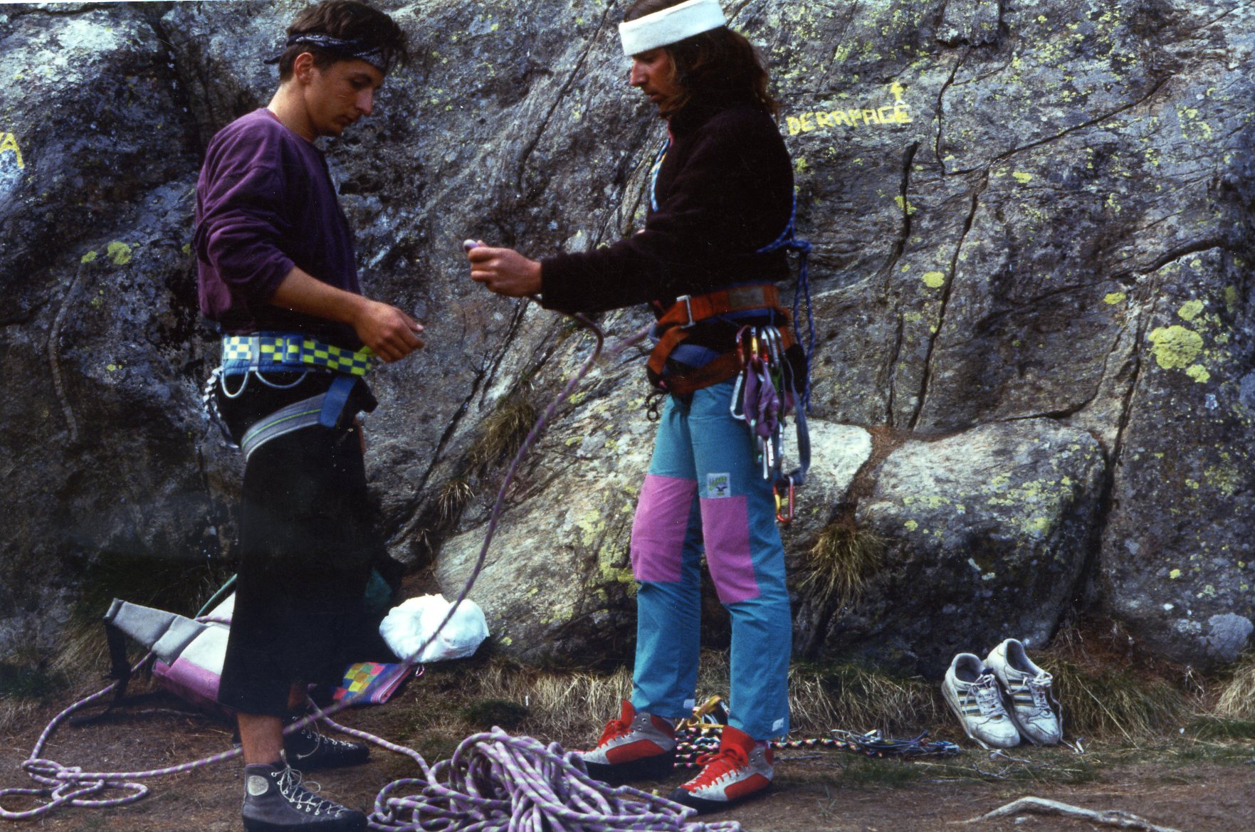 Rinaldo: Fin dove si poteva salivo slegato, anche su brevi tratti in artificiale dove tiravo i chiodi. L'autoassicurazione era troppo noiosa per me. Su Diamante pazzo, quando l'ho ripetuta da solo, mi sono legato in due tiri e il resto sono salito senza usare la corda. Ricordo anche il sorpasso di una cordata sulla Mellano-Perego, con i due che guardavano chi c'era legato all'altro capo della corda che trascinavo nel vuoto dietro di me e poi mi hanno chiesto “e il tuo compagno dov’è?".