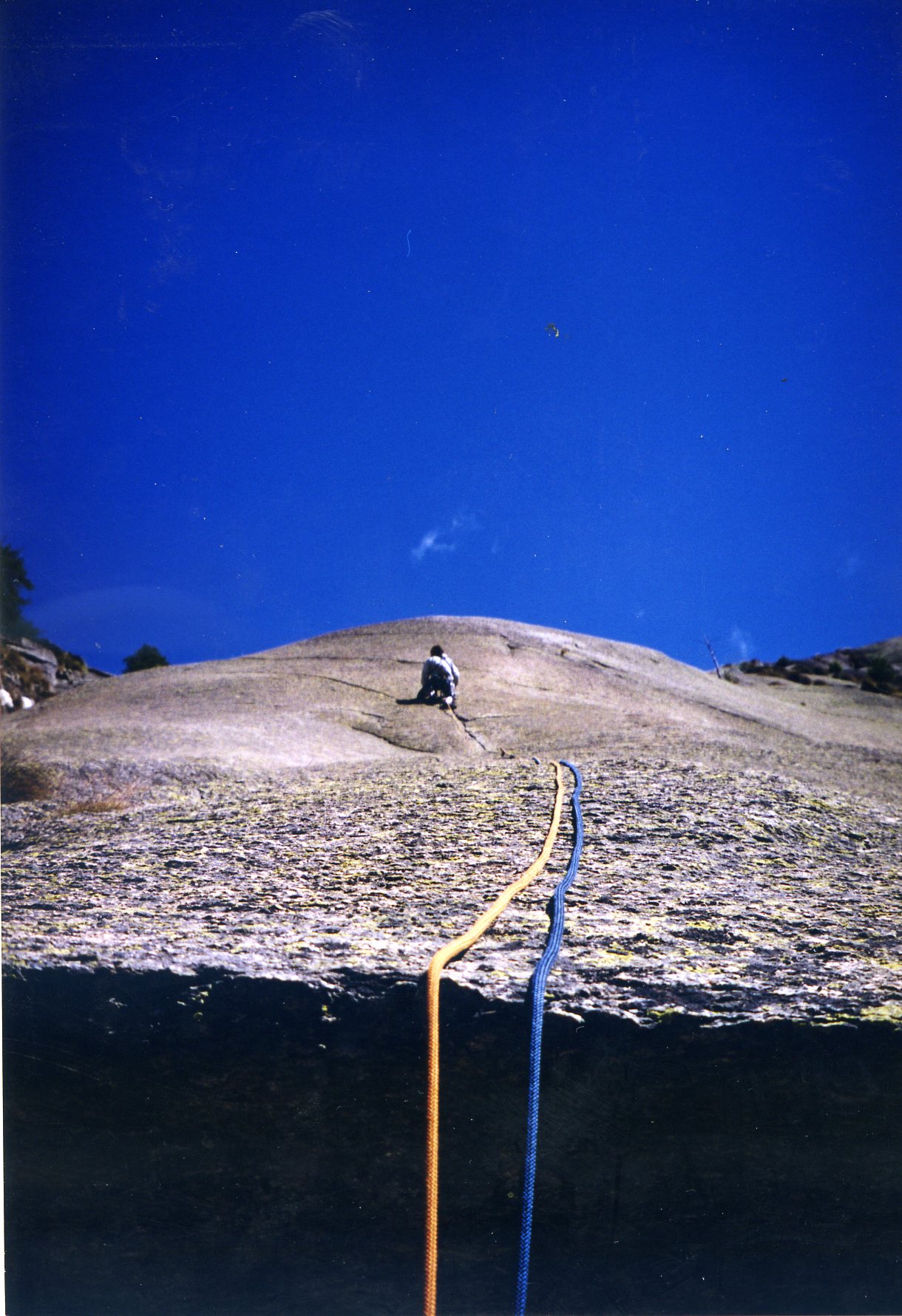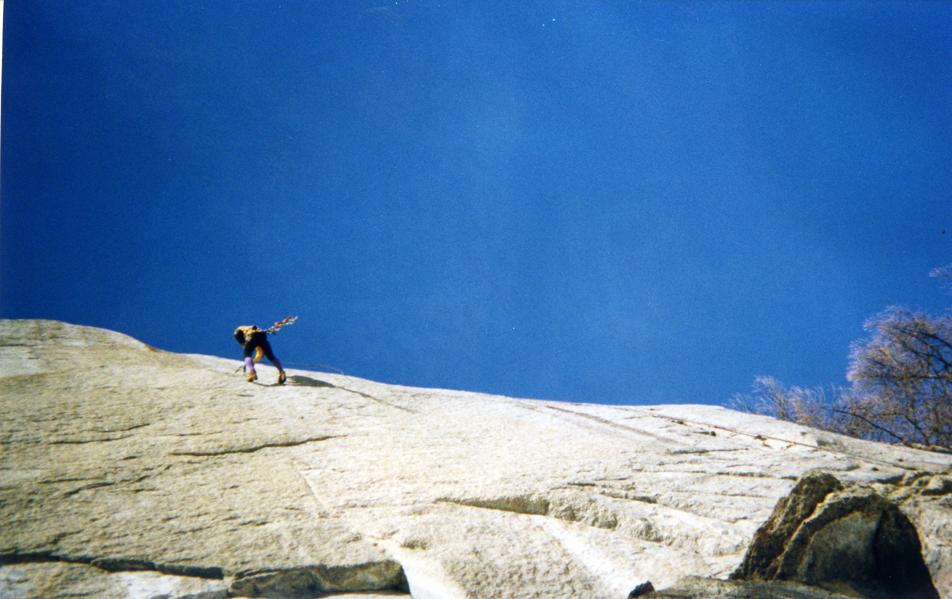 Ne avrei parecchi. Ricordo che prendevamo in giro Roberto perché aveva la fissa dei tetti: pensa che ha fatto un viaggio lunghissimo negli Stati Uniti e lui per tutto il periodo, un mese e mezzo, ha rotto le scatole a tutti perché voleva assolutamente provare, tra le tante bellissime fessure, Separate Reality e la salita al Nose nel parco dello Yosemite! Durante il viaggio hanno salito tutte le fessure classiche, ma Roberto è tornato orgoglioso con le foto di lui appeso a testa in giù su Separate Reality e con la soddisfazione di aver salito la Salathè, dopo un tentaivo al Nose, dove persero tuta l’attrezzatura perché il saccone da recupero di ruppe. in libera il Nose.