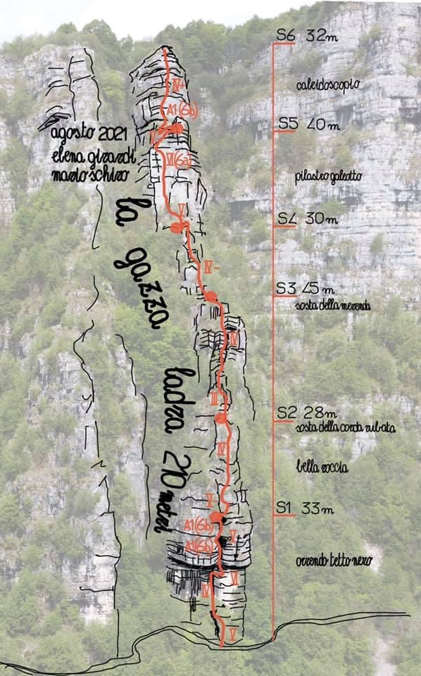 Aperta nel settembre 2022 da Lorenzo Dal Santo e Andrea Conforto, questa via si sviluppa per 4 lunghezze su 115 metri.