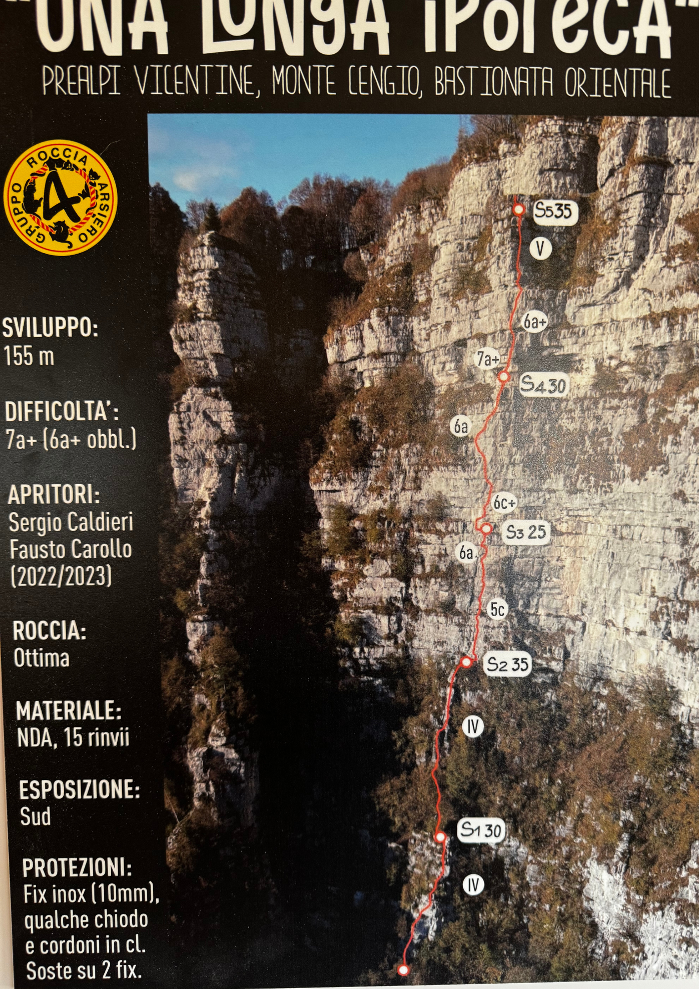 Aperta da Tranquillo Balasso e Dorian Pasat il 16 settembre 2023 la via è proprio inaspettata: chi pensava ci fosse ancora spazio al Cengio?!