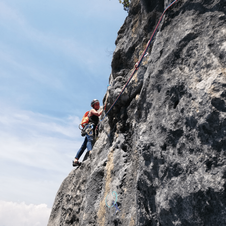 Non hai molte possibilità di riposarti lungo la via, ma le prese sono sempre abbastanza buone… anche nei punti dove non si vedono bene: il bello è trovarle!