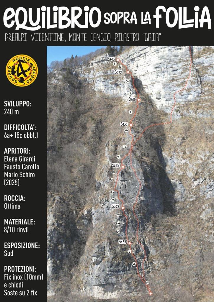 Due nuove vie sul Pilastro Gaia al Monte Cengio a opera di quegli instancabili alpinisti che tutti conosciamo nei 4 Gatti: Fausto Carollo, Elena Girardi, Mario Schiro. Oltre ad altre che già conosciamo…