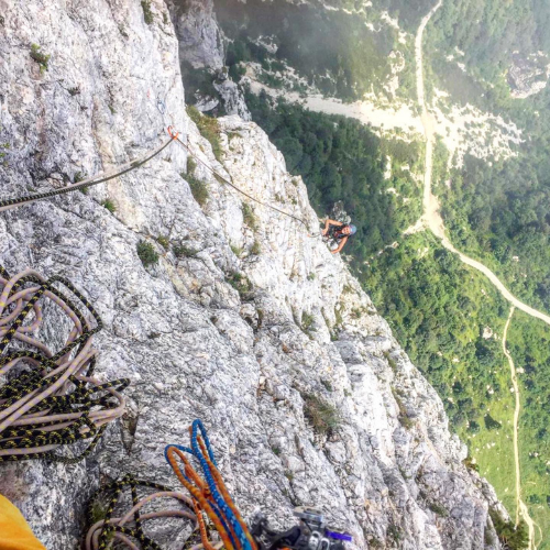 Consigliata, soprattutto se la si fa in ottima compagnia: grazie ai miei compagni di cordata Costina e Angela, e alla cordata che ci ha fatto compagnia alle soste con Ivo Maistrello, David e Gianluca.
