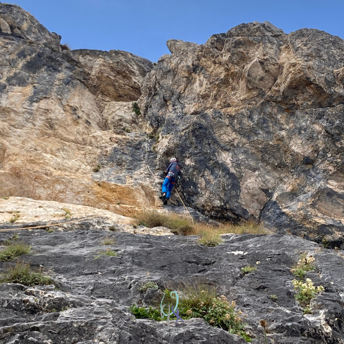 Alpinistica ma ben protetta, con soste a chiodi e alcune a spit (qui la relazione), questa via è adatta anche per chi ha iniziato da poco ad arrampicare. I primi tiri presentano alcuni passi non sempre intuitivi (come quello per arrivare alla prima sosta), ma la roccia è davvero ottima se pensiamo alla zona in cui ci troviamo. Si arrampica sempre: nessuno zoccolo o cengia erbosa da superare con noia.
