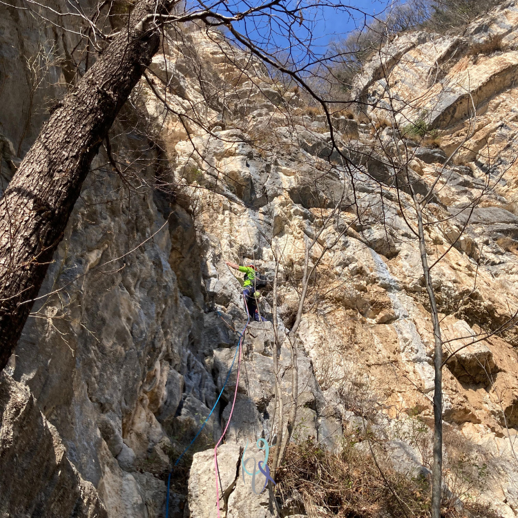 Bella e semplice via che può essere ripetuta anche in mezza giornata. Il tempo al Bostel si sa: se c’è il sole, meglio arrampicare in inverno e nelle mezze stagioni!